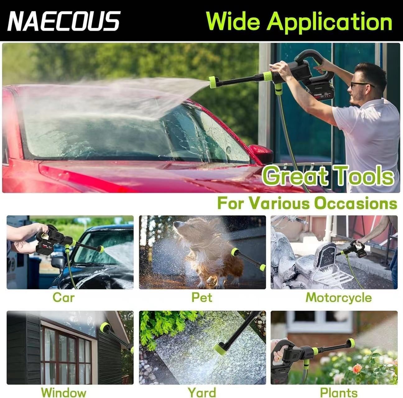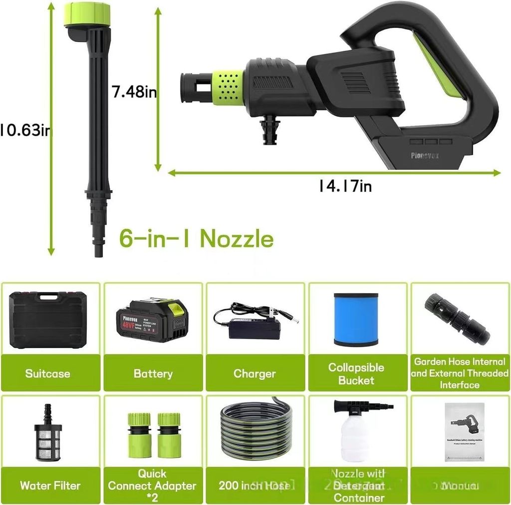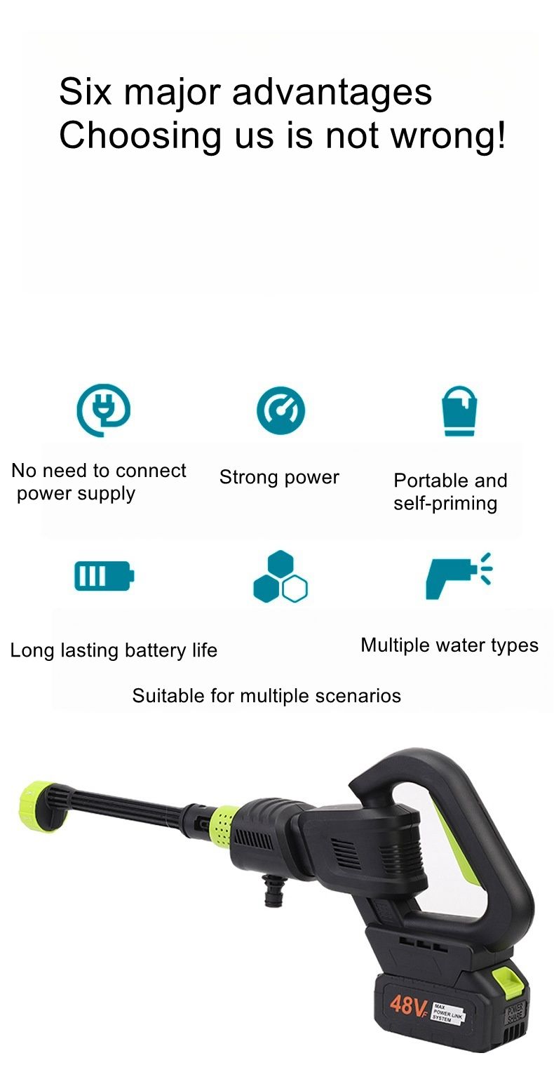 Cordless Pressure Washer with 1pcs Battery, Powered Handheld Car Washer with 6 in 1 Nozzle for Car Garden Fence Patio