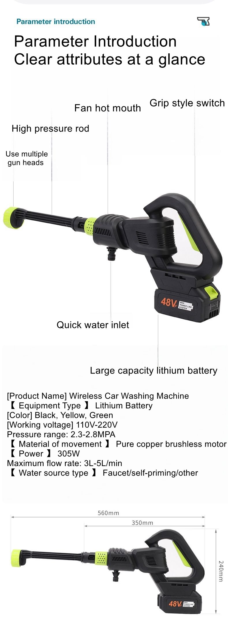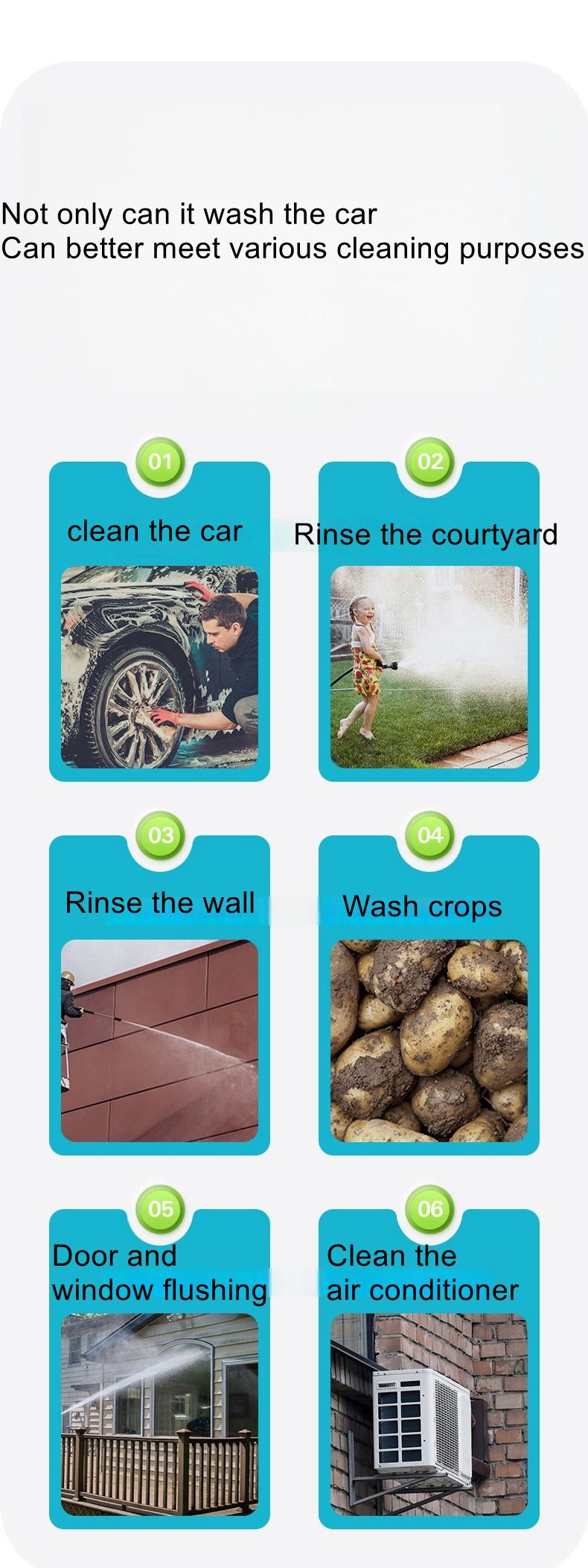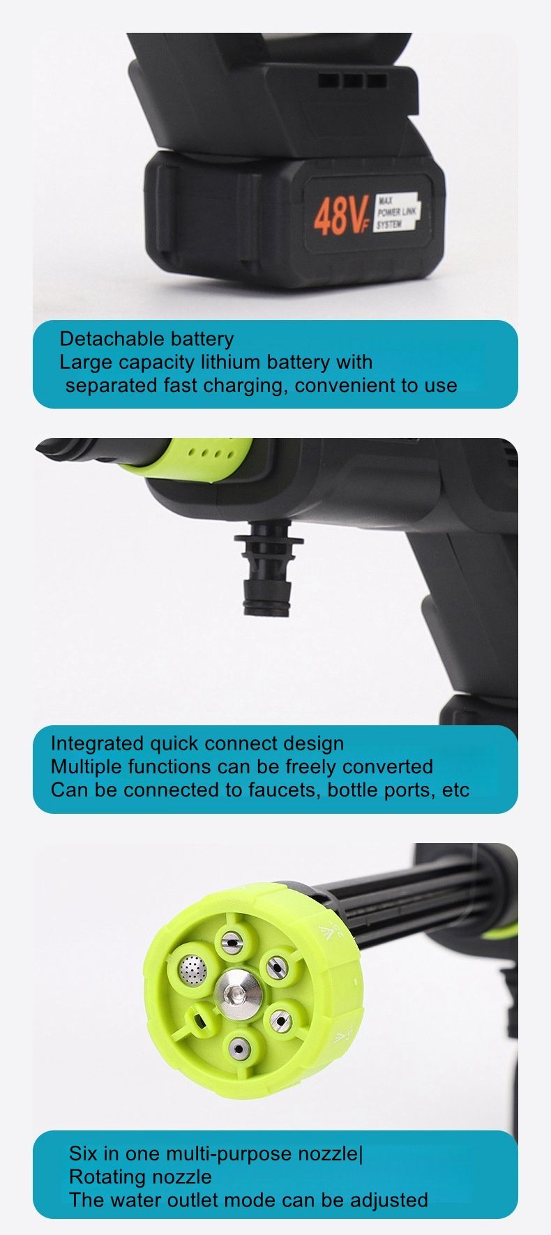 Cordless Pressure Washer with 1pcs Battery, Powered Handheld Car Washer with 6 in 1 Nozzle for Car Garden Fence Patio