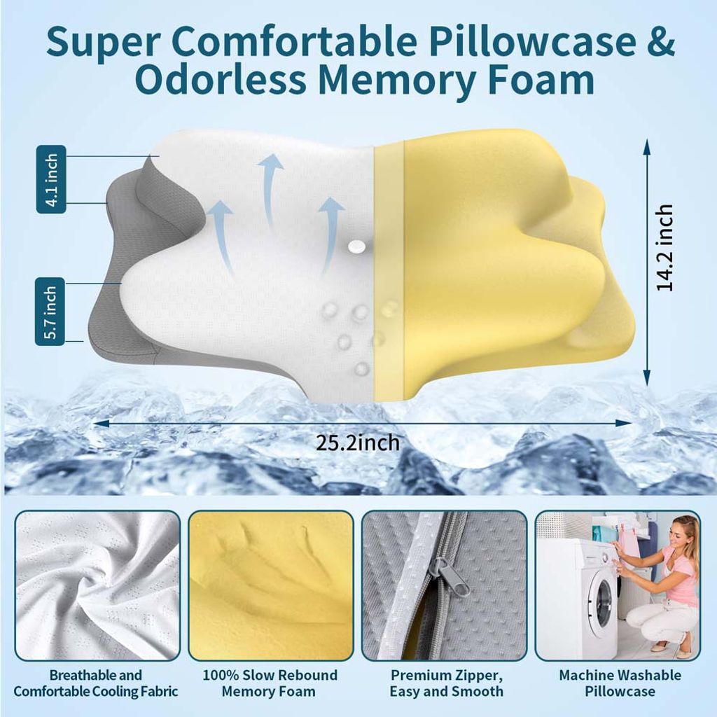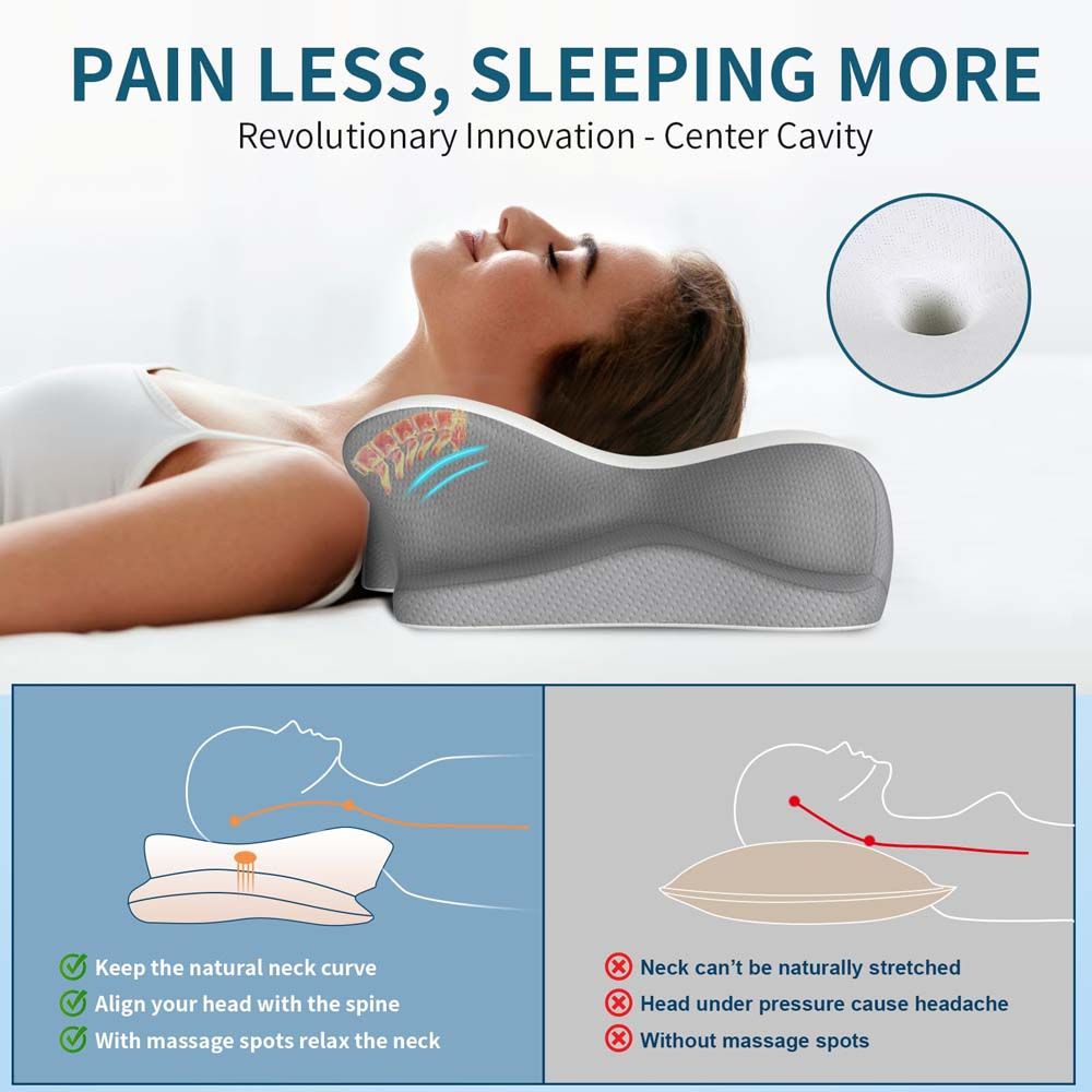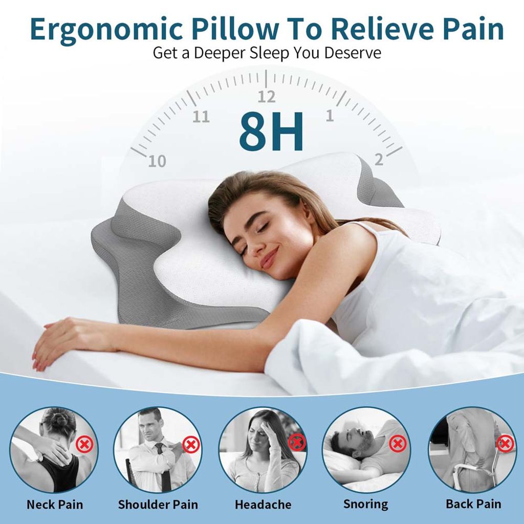 Orthopedic Butterfly Cervical Pillow Memory Foam Contoured Support Pillow for BackStomach Sleepers